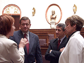 W towarzystwie marszałka Michała Czarskiego , prof. Daria Nałęcz zwiedziła historyczny gmach Sejmu Śląskiego a następnie udała się do Biblioteki Śląskiej.