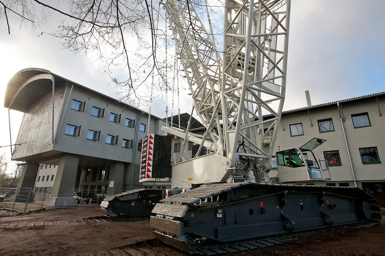 Jeden z największych dźwigów w Europie CC 2800 na budowie Stadionu Śląskiego