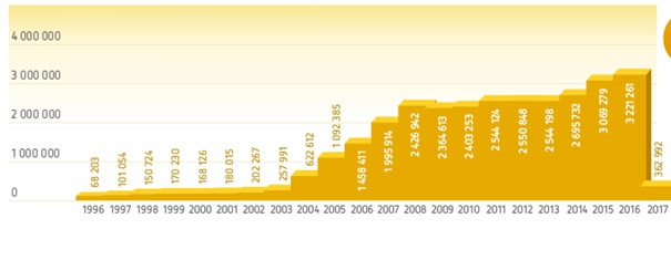 The "Katowice: IAP has direct international connections with, among others, Frankfurt and Düsseldorf and via these airports practically with the whole world. The permanent growth in the number of connection is observed, including with such cities as Dortmund, Dublin, Cologne, London, Milan, Paris and Rome. The airport in Katowice is characteristic of fast growth of passenger traffic.
