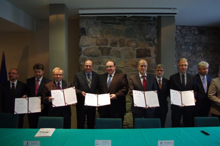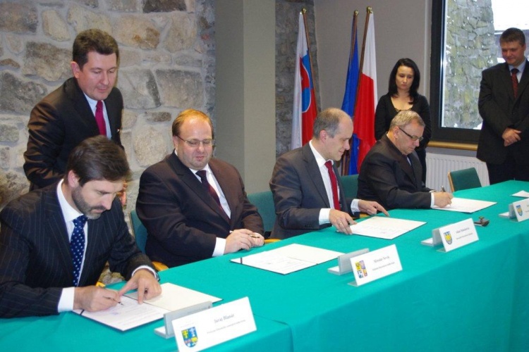 Szefowie Regionów partnerskich tworzących Europejskie Ugrupowanie Współpracy Terytorialnej TRITIA z o.o.: Józef Sebesta - Marszałek Województwa Opolskiego, Adam Matusiewicz - Marszałek Województwa Śląskiego, Juraj Blanár - Predseda Samorządowego Kraju Żylińskiego oraz Miroslav Novák - Hejtman Kraju Morawsko-Śląskiego, podpisali w Cieszynie dokumenty założycielskie EUWT TRITIA: "Konwencję oraz Statut".
