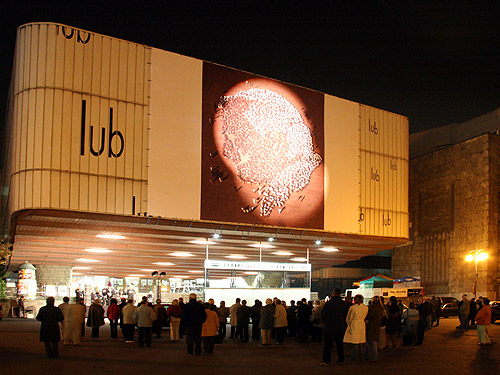 Wizerunek Jana Pawła II na frontonie GCK w Katowicach