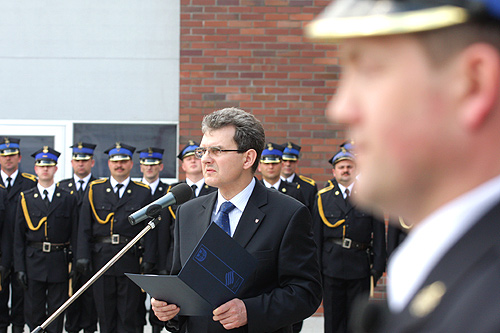 „Jestem pełen uznania dla straży pożarnej, której profesjonalizm i skuteczność miałem okazję wielokrotnie obserwować w trakcie akcji, często w skrajnie trudnych okolicznościach” – powiedział uczestniczący w uroczystości Marszałek Województwa Śląskiego Bogusław Śmigielski