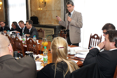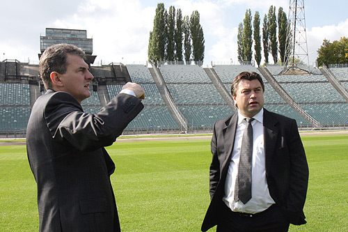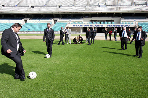 Posłowie z podkomisji osobiście sprawdzali zalety Stadionu Śląskiego  Gości powitał marszałek województwa Bogusław Śmigielski  Marcin Stolarz – dyrektor Biuro ds. Przygotowania EURO 2012 w Województwie Śląskim  Podkomisja stała do spraw przygotowania Polski do organizacji Mistrzostw Europy w Piłce Nożnej UEFA EURO 2012  Głos zabrał także prezydent Chorzowa Marek Kopel  Od lewej posłowie: Roman Kosecki, Iwona Guzowska i Jakub Rutnicki  O połączeniu kolejowym Katowice – lotnisko w Pyrzowicach mówił Jacek Stumpf, dyrektor Wydziału Komunikacji i Transportu Urzędu Marszałkowskiego  Konferencja prasowa po zakończeniu obrad podkomisji  Marek Nowak, przedstawiciel projektanta – gmp architekten, przedstawił koncepcję przebudowy stadionu  Marszałek Bogusław Śmigielski i poseł, były reprezentant Polski w piłce nożnej Roman Kosecki  Marszałek województwa Bogusław Śmigielski, dyrektor obiektu Marek Szczerbowski i prezydent Chorzowa Marek Kopel