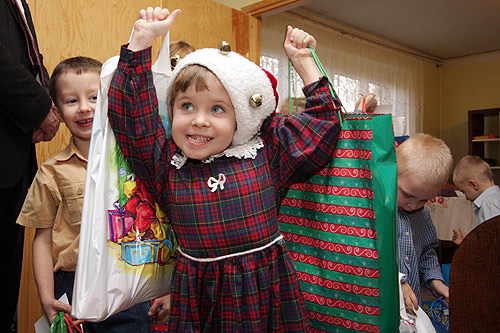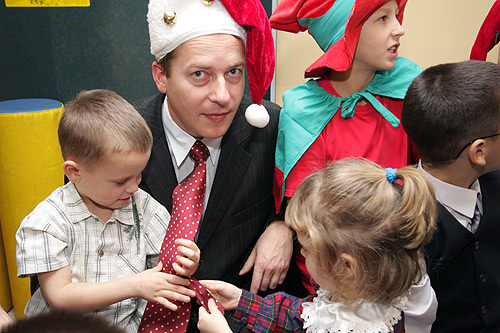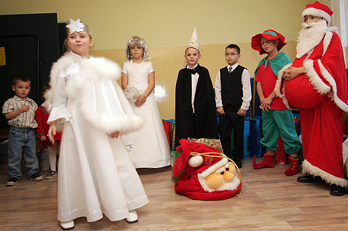 Mikołaje, czyli wicemarszałek Zbyszek Zaborowski i członek zarządu Mariusz Kleszczewski rozdawali dzieciom m.in. piłki, gry, buty sportowe, ubranka i słodycze.