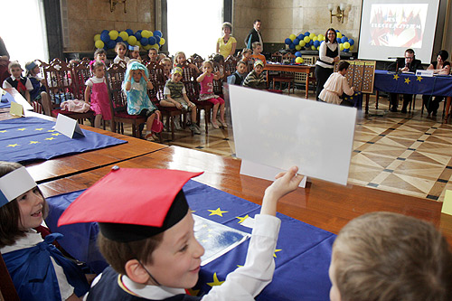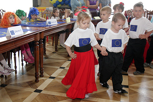 Salę Marmurową w Gmachu Sejmu Śląskiego wypełniło kilkadziesięcioro dzieci z Przedszkola Publicznego nr 52 w Bytomiu, Przedszkola Publicznego w Strzyżowicach, Przedszkola Publicznego w Wilczy i Przedszkola Publicznego nr 3 w Pszowie. Wiele z nich liczyło tyle lat, ile Polska jest w Unii Europejskiej. Dzieci błyskawicznie udzielały odpowiedzi podnosząc stosowne kartki: „prawda” lub „fałsz”. Prezentowały też wybrany kraj europejski. Konkursową rywalizację wzbogaciły występy przedszkolaków z Pszowa, które wykonały rodzimego poloneza.