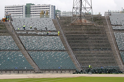 Symboliczny demontaż krzesełek na trybunach i wkopanie pierwszej łopaty zainaugurowały prace modernizacyjne na Stadionie Śląskim. Rozpoczęte dzisiaj roboty zakończą się w trzecim kwartale 2011 roku