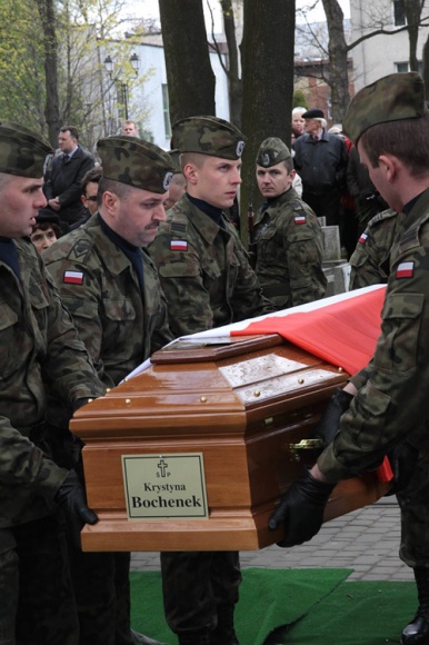 Wcześniej wspomnieniem o tragicznie zmarłej dziennikarce, parlamentarzystce i propagatorce polskiej mowy dzieliła się reportażystka radiowa Anna Sekudewicz: ”Wszystko co robiła, służyło ludziom. Świat wartości był dla niej ogromnie ważny - mówiła Sekudewicz, wyliczając licznie inicjatywy senator i akcje społeczne, w których brała udział. „Zawsze będzie dla nas punktem odniesienia.” W ceremonii pogrzebowej uczestniczyli, obok rodziny i przyjaciół, m.in. premier Donald Tusk, przewodniczący Parlamentu Europejskiego Jerzy Buzek, marszałek Senatu Bogdan Borusewicz, minister kultury Bogdan Zdrojewski, liczni parlamentarzyści i Marszałek Województwa Śląskiego, językoznawcy oraz Krystyny z całej Polski - uczestniczki dorocznych spotkań, których organizatorką była senator Bochenek.
