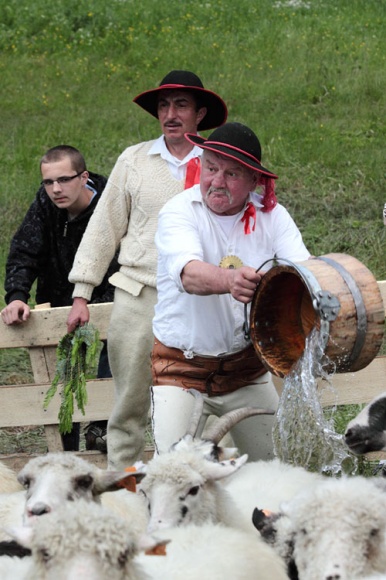 Baca ponownie wprowadził owce do zagrody, czyli kosorza na hali, dając pokaz liczenia oraz dojenia owiec. Okoliczni mieszkańcy oraz turyści zobaczyli także tradycje związane z odstraszaniem złych mocy - polewanie wodą oraz okadzanie.