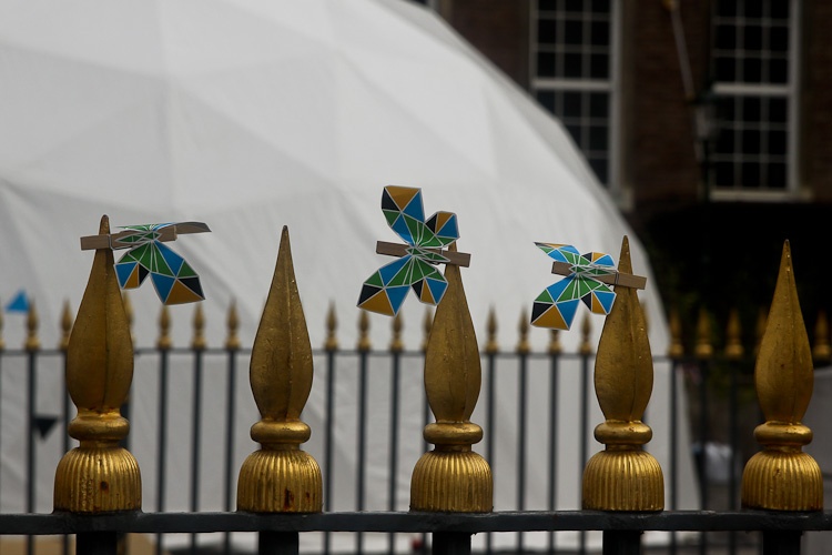 Wprost ze sceny marszałek oraz premier udali się na spacer po wszystkich pawilonach. Pawilon Beskidy, który odwiedzili jako pierwszy, wzbudził wiele emocji. Marszałek Śmigielski odbył niedługą, wirtualną przejażdżkę rowerową po trasach górskich. Potem na chwilę zatrzymano się w sektorze „Uzdrowiska/Spa", by przyjrzeć się wykonywanym tutaj zabiegom. Kolejnym namiotem był pawilon „Jura". Tutaj można było przyjrzeć się, jak zwolennicy wspinaczki górskiej zdobywają jurajską ściankę, podziwiano także ekspozycją sprzętu turystycznego autorstwa śląskich projektantów. W pawilonie „Industrial" goście zostali zaproszeni w wirtualną podróż windą górniczą do śląskich kopalni, leżących na Szlaku Zabytków Techniki. W pawilonie „Kino 3D" zwiedzający obejrzeli prezentację na temat śląskiej turystyki, przygotowaną specjalnie na wydarzenia „Guck mal! Schlesien". W namiocie głównym zatrzymano się na dłużej. Tutaj można było odpocząć i zakosztować specjałów śląskiej kuchni. Atmosfera rozmów, prowadzonych w otoczeniu śląskiego designu, odpowiednio dobranej muzyki oraz prezentacji multimedialnych na temat regionu, musiała przypaść gościom do gustu, ponieważ w tym pawilonie spędzili najwięcej czasu.
