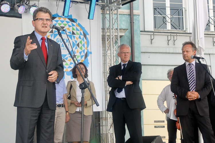 W piątek, 2 lipca, punktualnie o godz. 15:00 oficjalnie otwarto imprezę „Guck mal! Schlesien" w Düsseldorfie. Gości przywitali przedstawiciele władz partnerskich regionów, marszałek województwa śląskiego Bogusław Śmigielski, premier Północnej Nadrenii-Westfalii, Juergen Ruettgers oraz wiceburmistrz Düsseldorfu Marie Agnes Strack-Zimmermann.