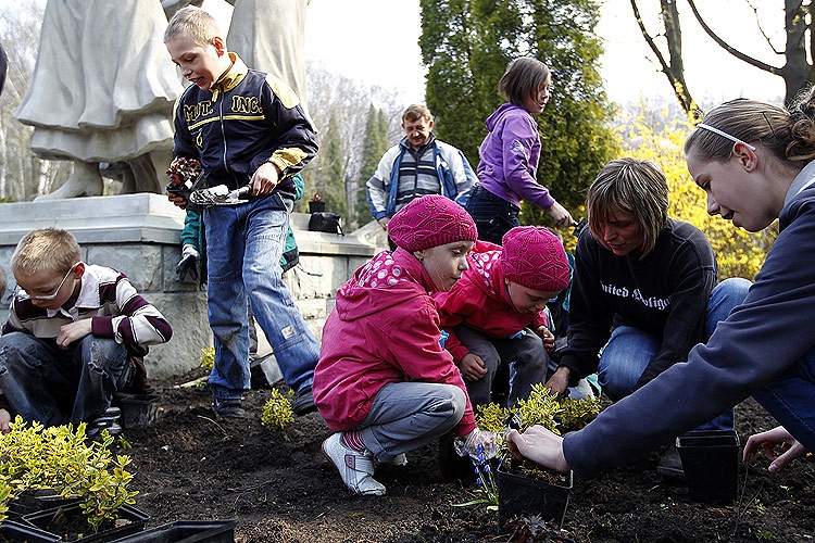 Dzieci z Zespołu Szkół Specjalnych w Chorzowie zasadziły kilkadziesiąt niezapominajek, które ze sobą przyniosły - to one właśnie w akcji „Nazywamy parkową aleję" wytypowały nazwę Aleja Niezapominajek. Choć nazwa nie wygrała, dzieci mają swoją rabatę, na której rosnąć będą niezapominajki.
