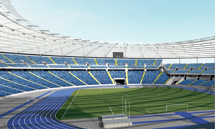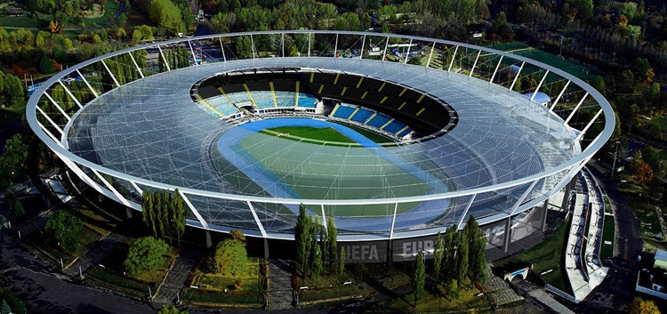 Operacja podniesienia konstrukcji linowej dachu składa się z 305 kroków i potrwa ok. 2 tygodnie. Sama konstrukcja linowa składa się z 40 lin promieniowych górnych i 40 lin promieniowych dolnych, 240 lin wieszaków, łączących górne i dolne liny, 80 stalowych łączników i 6 lin tworzących pierścień wewnętrzny rozciągany. Całkowita długość lin wynosi ok. 11km.