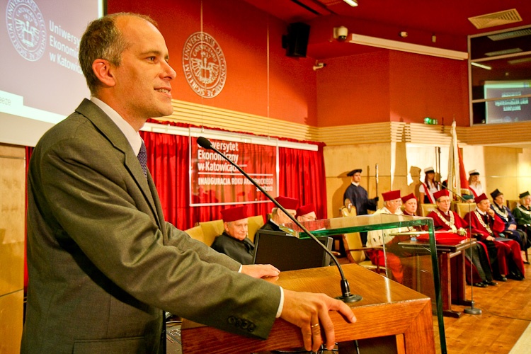 Gratulując jubileuszu, marszałek Adam Matusiewicz mówił o znaczeniu uczelni dla regionu. Zwracając się do studentów, wspomniał okres, kiedy sam był studentem katowickiej uczelni. „Wysoko wykwalifikowana kadra to najważniejszy kapitał. Po zakończonej nauce pamiętajcie, że zawsze znajdzie się dla was miejsce w województwie sląskim" - dodał marszałek Matusiewicz.