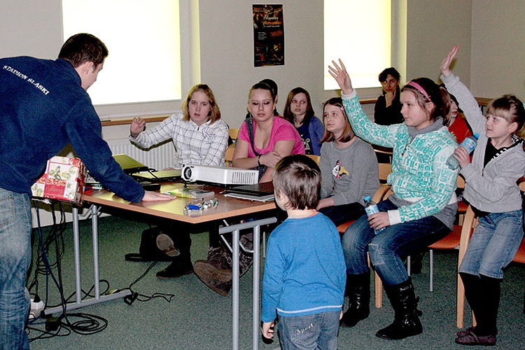 Z uwagi na bardzo niskie temperatury powietrza, czas wypełniały głównie gry i zabawy wewnątrz obiektu. Prawię połowę z obecnych na zajęciach dzieci stanowiły dziewczyny.