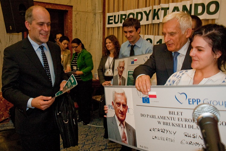 „Eurodyktando to świetny pomysł. Gratuluję wam uczestnictwa w tym oryginalnym wydarzeniu. Warto dbać o polszczyznę, o nasz europejski dom, warto uczyć się języków i poznawać sąsiadów. Im bardziej interesujemy się Europą, tym bardziej czujemy się Polakami" - zwrócił się do młodzieży Jerzy Buzek.