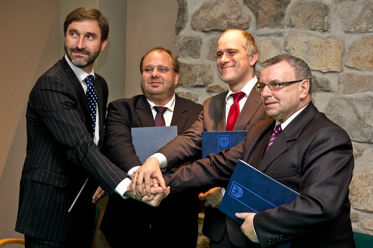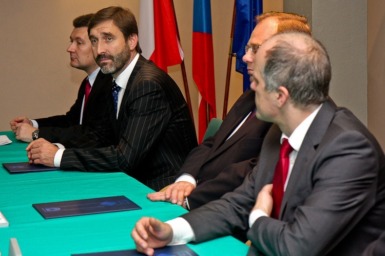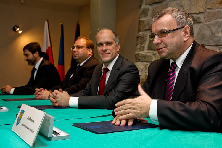 Uroczystość podpisania aktu założycielskiego Europejskiego Ugrupowania Współpracy Tery-torialnej TRITIA odbyła się na Zamku w Cieszynie. Obok przedstawicieli strony polskiej, Marszałka Województwa Śląskiego Adama Matusiewicza i Opolskiego, Józefa Sebesty dokument parafowali - hetman Kraju Morawsko-Śląskiego Miroslav Novak oraz Juraj Blanár przewodniczący Samorządowego Kraju Żylińskiego.