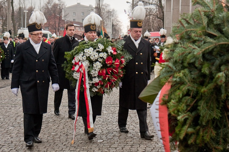 Wieńce złożyli m.in. przedstawiciel Prezydenta RP minister Sławomir Rybicki oraz minister pracy i polityki społecznej Władysław Kosiniak-Kamysz. Hołd poległym oddali przedstawiciele władz wojewódzkich na czele z członkiem Zarządu Aleksandrą Banasiak i przewodniczącym Sejmiku Województwa Śląskiego Andrzejem Gościniakiem. Pod pomnikiem kwiaty złożyli także Wojewoda Śląski Zygmunt Łukaszczyk, prezydent Katowic Piotr Uszok, parlamentarzyści i radni wojewódzcy.