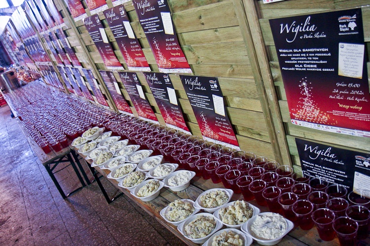 Na wieczerzę przygotowano ponad dwieście karpi. Podano zupę grzybową, barszcz z uszkami, karpia smażonego, kapustę, sałatki, śledzie, rybę w galarecie. Do picia - poza zimnymi napojami - nie zabrakło tradycyjnego kompotu z suszonych owoców.