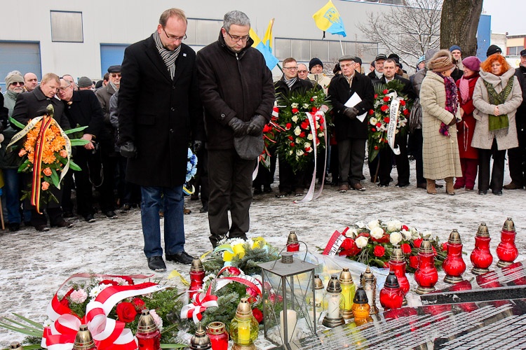 Członek Zarządu Jerzy Gorzelik złożył kwiaty i zapalił znicze pod bramą - pomnikiem dawnego obozu Zgoda. „Wierna swym wolnościowym tradycjom Polsko, przyjmij wszystkich synów ziemi bez względu na różnice języka i wiary i daj świadectwo wielkiej prawdzie, że w nowoczesnym państwie jest miejsce dla ludzi różnych języków i wyznań i ich wspólnej pracy dla dobra ludzkości" - przypomniał słowa Wojciech Korfantego.