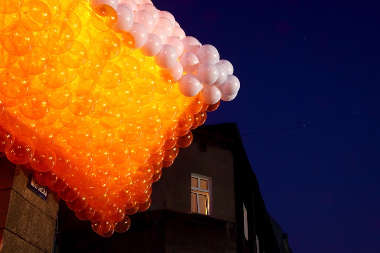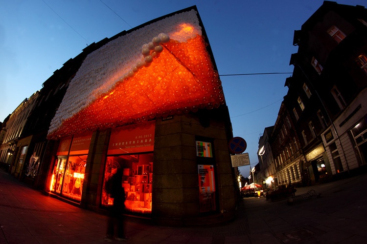 To już druga odsłona tej instalacji autorstwa Matyldy Sałajewskiej i Szymona Motyla. Jest to inspiracja białym smokiem, jednym z bohaterów „Niekończącej się historii". Pierwsza odsłona miała miejsce na katowickim Nikiszowcu w czasie ubiegłorocznej INDUSTRIADY. W tym roku instalacja ma formę „skóry" zbudowanej z białych i pomarańczowych kul, które kojarzą się z organiczną, żywą materią. Moduły kul są odpowiednio podświetlone i tworzą iluzję przestrzeni. Dodatkowo w witrynach na parterze kamienicy zostanie przygotowana ekspozycja prezentująca materiały poligraficzne, gadżety, neon i obiekty 3D promująca INDUSTRIADĘ i Szlak Zabytków Techniki.