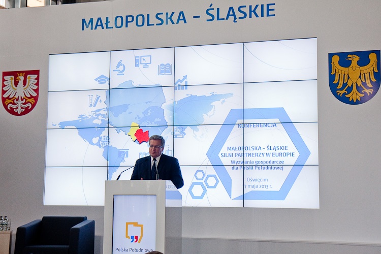 „Świat współczesny jest tak zbudowany, że konkuruje się w wielu różnych dziedzinach. Sztuka polega na tym, żeby konkurując umieć współpracować. Stoimy obecnie w obliczu wielkiego wyzwania - współpracy międzyregionalnej. Szukamy szans na optymalne wydawanie pieniędzy, zwłaszcza w obliczu ogromnej kwoty - 300 mld zł, które Polska otrzyma w przyszłej perspektywie. Kiedyś programy makroregionalne zamieniały się w sojusze słabości, bo były podyktowane troską o najsłabszych. W tym przypadku mówimy o sumowaniu atutów i wydobywaniu wszelkich możliwości, które drzemią w obu regionach. Śląsk i Małopolska to 1/5 polskiego PKB, to jest gigantyczna siła!" - mówił Prezydent RP Bronisław Komorowski.