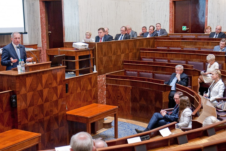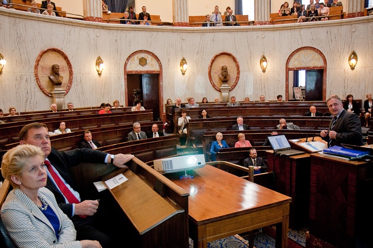 „Temat ochrony zdrowia zawsze budzi kontrowersje. Jest to widoczne zwłaszcza na Śląsku. Samorząd województwa śląskiego jest największym w Polsce właścicielem jednostek ochrony zdrowia" - mówił gość sesji Sławomir Neumann, Sekretarz Stanu w Ministerstwie Zdrowia. „Jesteśmy w trakcie debaty o polityce zdrowotnej w kontekście ustawy o działalności leczniczej. Nie zakładamy w niej jednak żadnych zmian dotyczących przekształceń jednostek. Debatujemy także o zmianach w Narodowym Funduszu Zdrowia. Naszym głównym zadaniem będzie decentralizacja funduszu i zwiększenie wpływu samorządów na wydatkowanie środków" - kontynuował Sławomir Neumann.