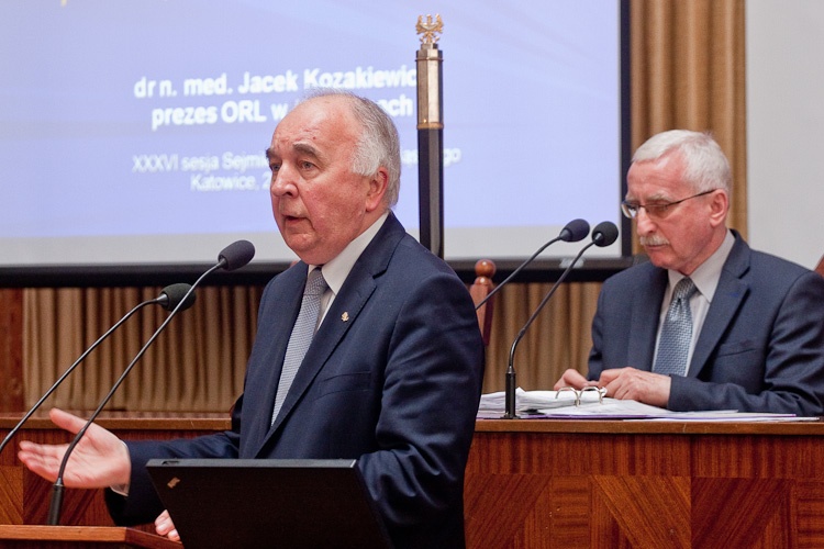 W imieniu środowiska lekarskiego, związków pielęgniarek i położnych oraz aptekarzy głos zabrał prezes Okręgowej Rady Lekarskiej Jacek Kozakiewicz. Przedstawił najważniejsze dylematy i zagrożenia w szpitalach województwa śląskiego na tle polskich problemów ochrony zdrowia. Wskazał m.in. na niedofinansowanie systemu, rozbieżności w kwestii odpowiedzialności za zdrowie publiczne, nadmierne skomplikowanie otoczenia prawnego oraz wpływ czynników demograficznych i systemu kształcenia lekarzy i pielęgniarek na obecną sytuację w ochronie zdrowia w Polsce i na Śląsku. Prezes ORL podkreślił wagę utworzenia sieci szpitali, zbudowanej w oparciu o mapę potrzeb zdrowotnych. Sieć ta powinna przede wszystkim obejmować jednostki strategiczne, tj. szpitale kliniczne i wojewódzkie. Za równie istotne uznał zapewnienie stabilnych zasad finansowania dla podmiotów znajdujących się w sieci (wydłużenie okresu kontraktowania, dostosowanie cen do wysokospecjalistycznych, kompleksowych świadczeń).