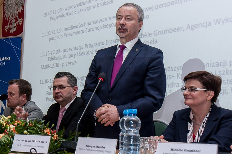 Aby przybliżyć założenia programu ERASMUS+ i zachęcić do udziału w nim, Biuro Regionalne Województwa Śląskiego w Brukseli wspólnie z Kuratorium Oświaty w Katowicach, Urzędem Marszałkowskim Województwa Śląskiego na Uniwersytecie Śląskim w Katowicach zorganizowało konferencję z udziałem ok. 300 dyrektorów szkół i nauczycieli z regionu. „To kolejny projekt finansowany ze środków unijnych, obok niedawno realizowanego programu Doktoris. Nasza młodzież jest bardzo dobrze kształcona. Musimy to dobrze wykorzystać w szkołach ponadgimanzjalnych i uczelniach wyższych. Stąd niezwykle cenne są takie programy, w których młodzież i kadra nauczycielska może się integrować, wyjeżdżać, zdobywać doświadczenie za granicą. Napawa nas to ogromnym optymizmem, że te środki zostaną dobrze wykorzystane” – mówił członek Zarządu Arkadiusz Chęciński podczas konferencji.