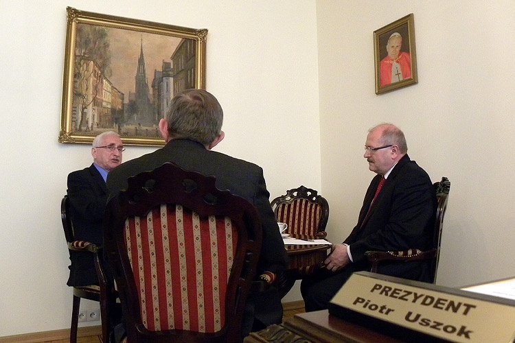 W Urzędzie Miasta Katowice o zbliżającej się sesji prezydent Piotr Uszok i przewodniczący Rady Miasta Katowice Jerzy Forajter rozmawiali z przewodniczącym Sejmiku Województwa Śląskiego Andrzejem Gościniakiem. Dyskutowano o szczegółach organizacyjnych posiedzenia oraz porządku obrad w części poświęconej Subregionowi.