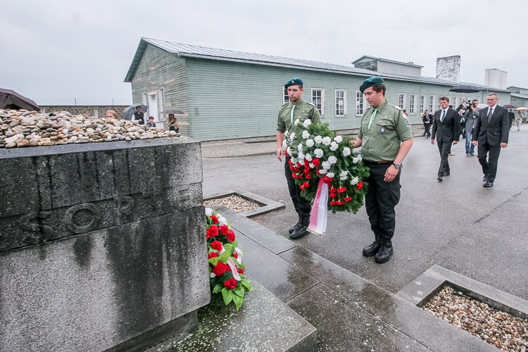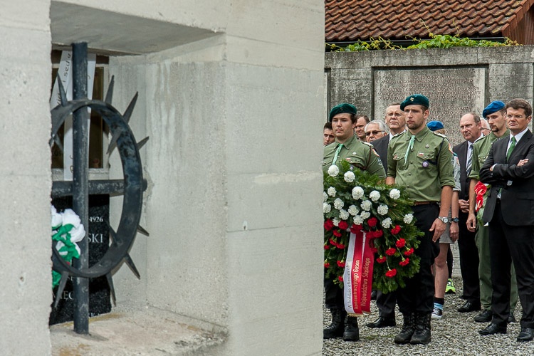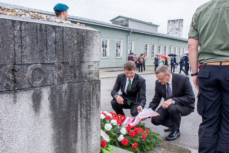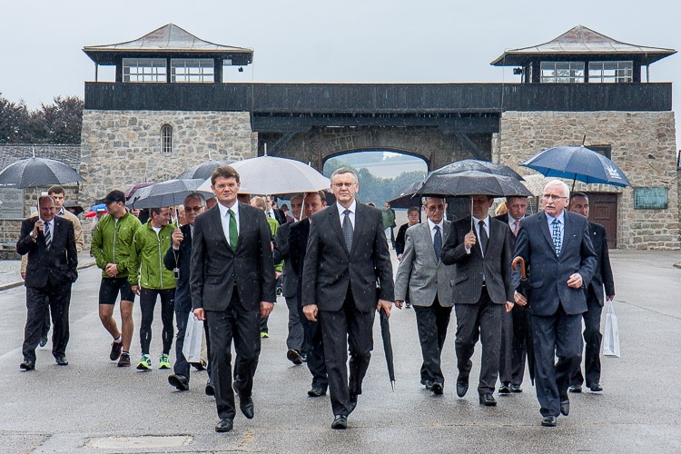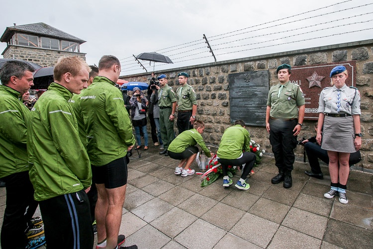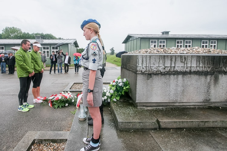 Finał sztafety, która w dziesięcioosobowym gronie biegła z Jastrzębia-Zdroju i w ciągu trzech dni pokonała 462 km, poprzedziło złożenie kwiatów i zapalenie zniczy pod tablicą poświęconą Henrykowi Sławikowi przy Sarkofagu na Placu Apelowym, miejscu pamięci ofiar hitlerowskiego obozu oraz pod polskim pomnikiem na terenie obozu.