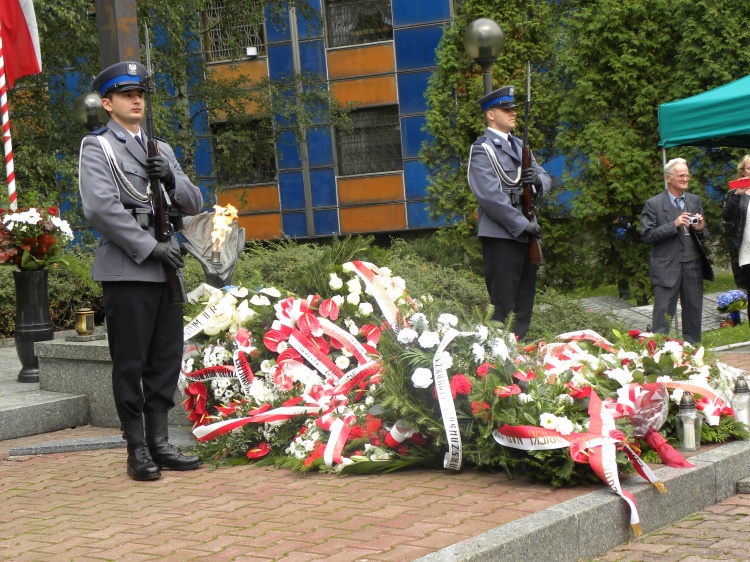 Uroczystość zakończyło złożenie wieńców i wiązanek kwiatów pod pomnikiem. W imieniu Marszalka Mirosława Sekuły i radnych województwa wieniec złożył Andrzej Gościniak Przewodniczący Sejmiku Śląskiego. Po uroczystości był czas na spotkania i wspomnienia przybyłych z całej Polski kombatantów i członków Stowarzyszenia "Rodzina Policyjna 1939."