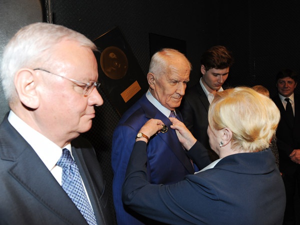 Po spektaklu Przewodnicząca Kapituły, radna województwa prof. Lutgarda Buzek wręczyła Złote Odznaki za Zasługi dla Województwa Śląskiego Tadeuszowi Łapińskiemu i Jerzemu Rzyskiemu - Mecenasom Teatru.