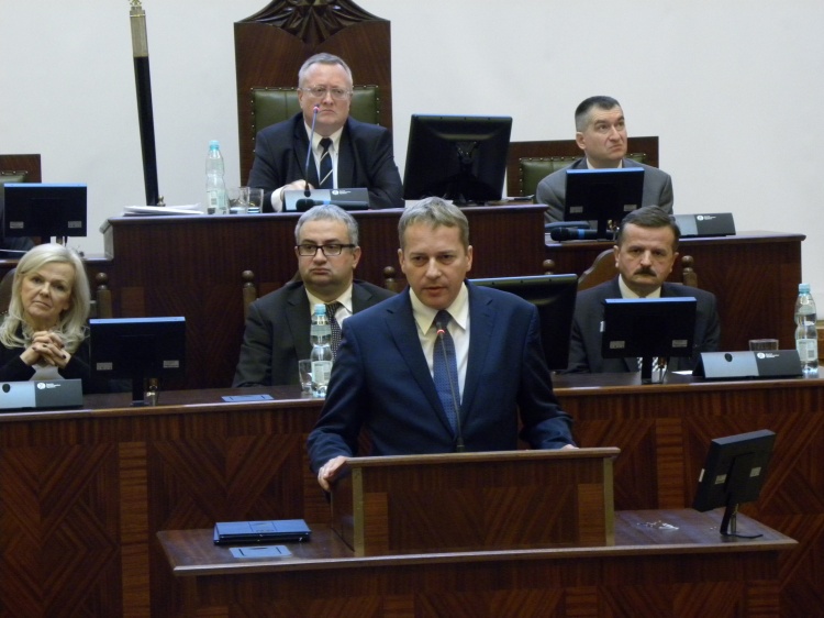 Radny Jarosław Makowski PO na Marszałka Województwa zaproponował posła Wojciecha Saługę, natomiast Jan Kawulok PIS zgłosił kandydaturę radnego województwa Piotra Czarnynogę. W głosowaniu tajnym na Marszalka 25 głosami wybrany został Wojciech Saługa. Nowy Marszałek zapowiedział kontynuację prac poprzedniego Zarządu oraz zaprosił wszystkie ugrupowania reprezentowane w Sejmiku do szerokiej współpracy na rzecz dobra regionu i poprawy komfortu życia mieszkańców. Marszałek Wojciech Saługa zaproponował na Wicemarszałków Aleksandrę Skowronek (PO) i Stanisława Dąbrowę (PSL), a na Członków Zarządu Gabrielę Lenartowicz (PO) i Kazimierza Karolczaka (SLD). Radni w głosowaniu tajnym przyjęli zaproponowane kandydatury.