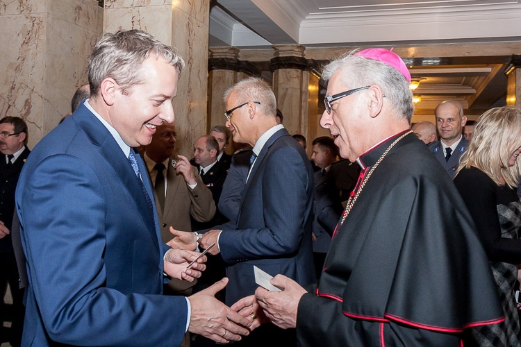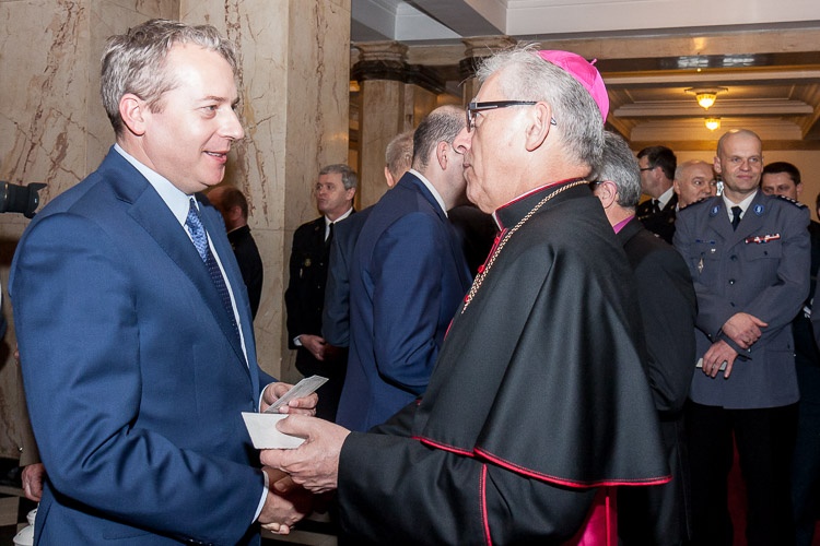 Wojewoda Śląski Piotr Litwa zaprosił na tradycyjne przedświąteczne spotkanie Marszałka Województwa Śląskiego Wojciecha Saługę, prezydenta Katowic, a także przedstawicieli śląskich służb mundurowych m.in. wojska, policji, straży granicznej, służby więziennej. Przybyli także metropolita katowicki abp. Wiktor Skworc oraz Marian Niemiec, biskup Diecezji Katowickiej Kościoła Ewangelicko-Augsburskiego.