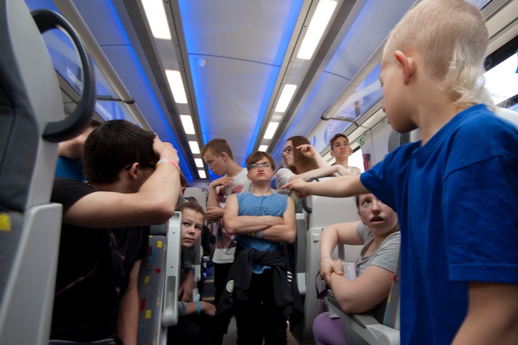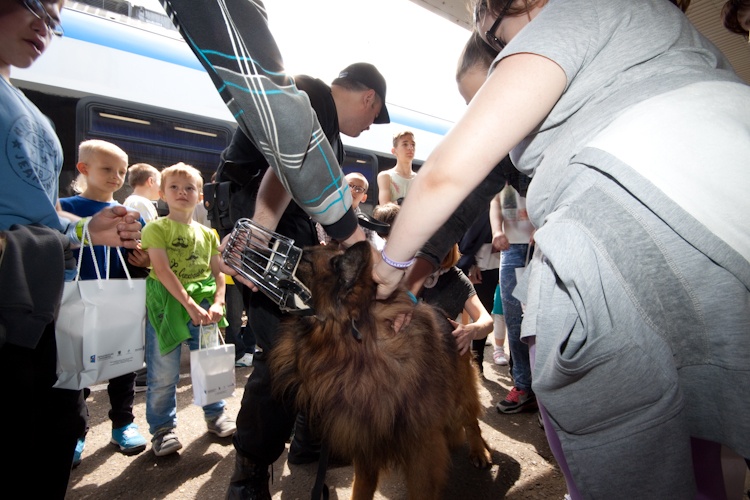 Mogły one wejść do niedostępnej dla pasażerów kabiny maszynisty tego nowoczesnego pociągu oraz zadawać pytania załodze składu. Atrakcją był krótki wykład funkcjonariuszy Służby Ochrony Kolei na temat bezpiecznego zachowania się na torach. Przyprowadzili oni także psa tropiącego. Dzieci otrzymały materiały promocyjne z Urzędu Marszałkowskiego oraz przewoźnika.