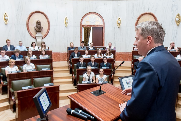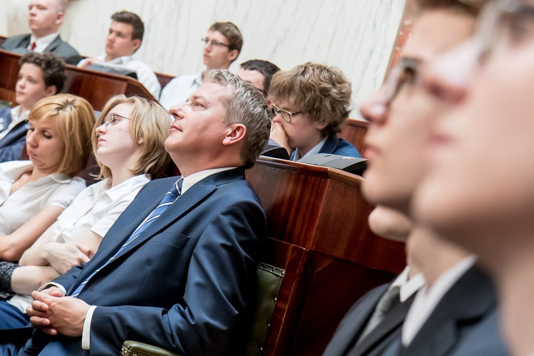 W lekcji udział wziął marszałek Wojciech Saługa. „Cieszę się, że mogę was gościć w ramach lekcji samorządowej w historycznym gmachu, w pięknej Sali Sejmu Śląskiego. Nie ma chyba lepszego miejsca w województwie śląskim, a może i w całej Polsce, by mówić o samorządności. Jestem przekonany, że dzisiejsze spotkanie, ta oryginalna lekcja uświadomi wam, że to, jak wyglądają dzisiaj nasze miasta czy gminy, możliwe jest w głównej mierze dzięki reformie samorządowej. Na tym polega siła społeczeństwa obywatelskiego – na uprawnieniu do kształtowania naszej wspólnej przyszłości. Możliwość decydowania o swoich sprawach i podejmowania decyzji, których źródłem jest zasada samorządności, jest wielką wartością” – mówił do młodzieży marszałek Saługa.