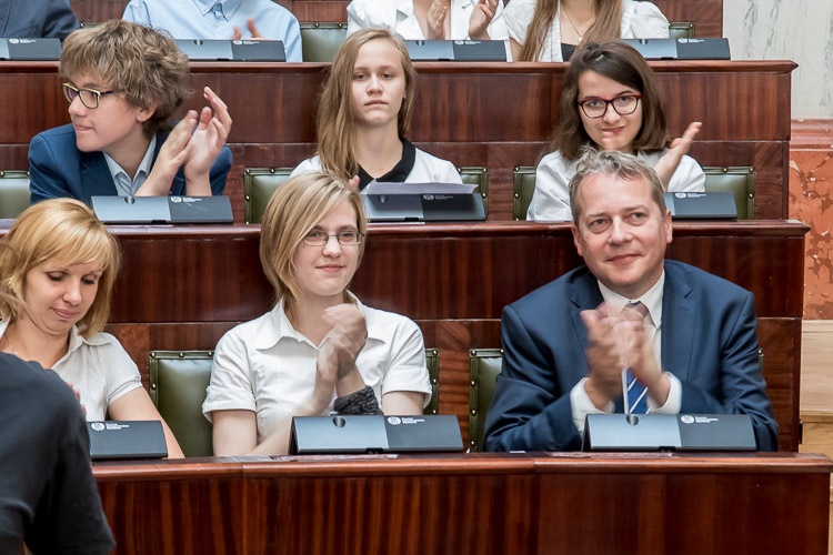 W lekcji udział wziął marszałek Wojciech Saługa. „Cieszę się, że mogę was gościć w ramach lekcji samorządowej w historycznym gmachu, w pięknej Sali Sejmu Śląskiego. Nie ma chyba lepszego miejsca w województwie śląskim, a może i w całej Polsce, by mówić o samorządności. Jestem przekonany, że dzisiejsze spotkanie, ta oryginalna lekcja uświadomi wam, że to, jak wyglądają dzisiaj nasze miasta czy gminy, możliwe jest w głównej mierze dzięki reformie samorządowej. Na tym polega siła społeczeństwa obywatelskiego – na uprawnieniu do kształtowania naszej wspólnej przyszłości. Możliwość decydowania o swoich sprawach i podejmowania decyzji, których źródłem jest zasada samorządności, jest wielką wartością” – mówił do młodzieży marszałek Saługa.