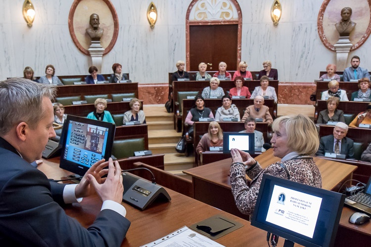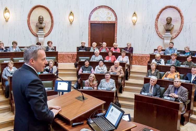 „Cieszę się, że mogę się z Państwem – już nie po raz pierwszy – spotkać w Sali Sejmu Śląskiego, w naszym wojewódzkim centrum demokracji. Są Państwo żywym dowodem na to, że seniorzy to aktywna i pełna potencjału grupa społeczna, z ogromnym zapałem i chęcią do działania. Myślenie o seniorach to myślenie o przyszłości regionu. Nie wyobrażam sobie tej refleksji bez współpracy z tymi, którzy za chwilę stanowić będą najliczniejszą grupę społeczną w województwie. Chcemy korzystać z doświadczeń ludzi doświadczonych” – mówił marszałek Saługa do zgromadzonych.
