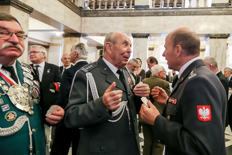 Na zaproszenie marszałka Wojciecha Saługi na spotkanie ze środowiskami kombatanckimi i niepodległościowymi z okazji zbliżających się świąt Bożego Narodzenia przybyli przedstawiciele władz, służb mundurowych, duchowieństwo, harcerze oraz młodzież. W uroczystości uczestniczyli także wicemarszałek Stanisław Dąbrowa, przewodniczący Sejmiku Grzegorz Wolnik i prezydent Katowic Marcin Krupa.