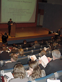 O regionalnych i społecznych aspektach rozwoju społeczeństwa informacyjnego oraz znaczeniu poszczególnych elementów programu e-Government mówił Olivier Pascal, przedstawiciel Dyrekcji Generalnej ds. Społeczeństwa Informacyjnego w Komisji Europejskiej. „Społeczeństwo informacyjne to zagadnienie, którego obecność w Narodowym Planie Rozwoju jest wręcz nieodzowna. W krajach wstępujących do UE należy usilnie promować wszelkie rozwiązania poszerzające dostęp obywateli do administracji publicznej oraz przyspieszać proces informatyzacji urzędów i instytucji publicznych. Celem takich działań jest nie tylko osiągnięcie postępu cywilizacyjnego lecz także ułatwienie pracy i życia urzędnikom oraz petentom” – powiedział Olivier Pascal. Chodzi o to by w niedalekiej przyszłości obywatel mógł załatwić większość formalności w urzędach publicznych bez konieczności ich odwiedzania. Po upowszechnieniu się podpisu elektronicznego oraz wprowadzeniu skutecznych zabezpieczeń dostępu i poufności danych, składanie dokumentów i formularzy (pobieranych także z sieci) będzie się odbywało poprzez Internet. Możliwe też będzie monitorowanie przez obywatela poszczególnych faz rozpatrywania przez urząd danej sprawy. Jednym z ważniejszych elementów strategii e-Government jest również rozbudowa szerokopasmowych łącz internetowych o wielkiej przepustowości (broadband strategy). Tworzenie regionalnych sieci takich połączeń oraz łączenie ich z krajowymi oraz europejskimi systemami tej kategorii będzie sprzyjać współpracy i wymianie informacji pomiędzy instytucjami, uczelniami, instytutami badawczo-rozwojowymi oraz organizacjami zrzeszającymi firmy sektora MŚP.