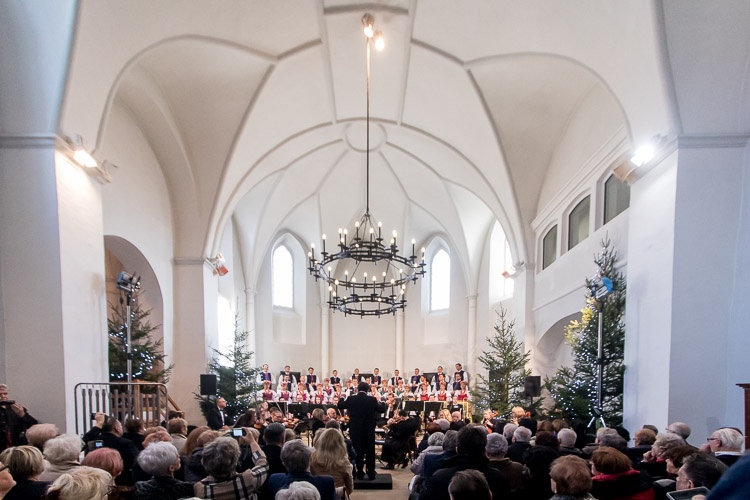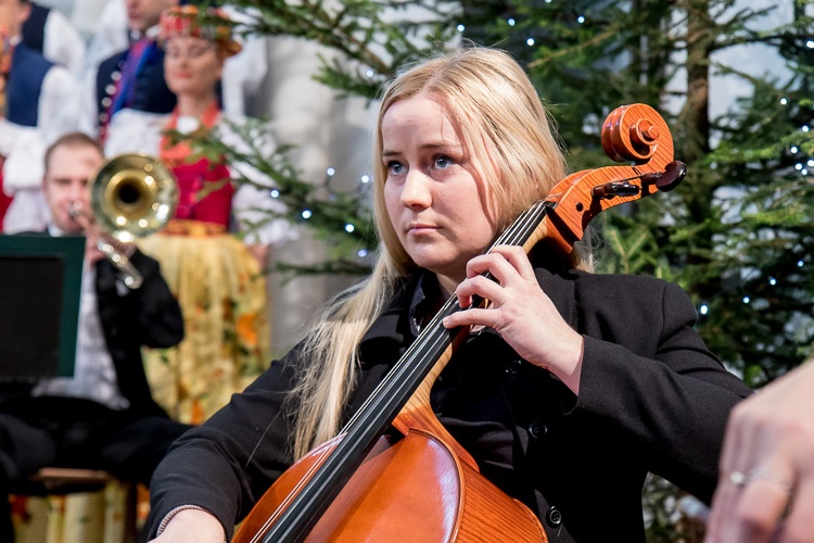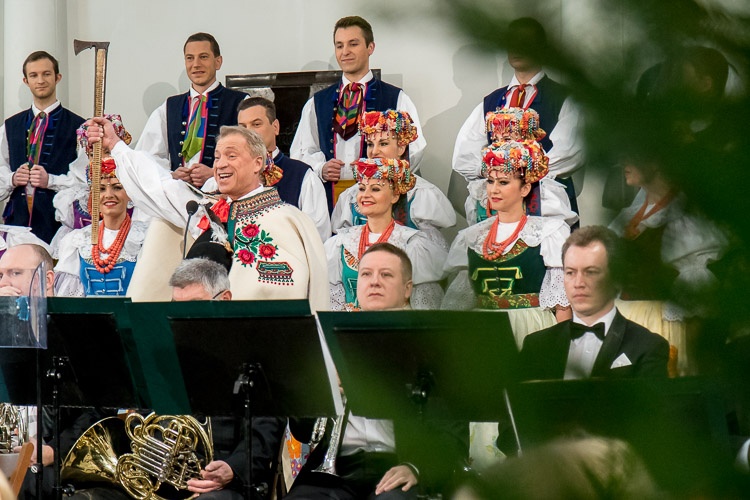 Seniorzy obok świątecznych życzeń mieli okazję wysłuchać koncertu kolęd w wykonaniu Zespołu Pieśni i Tańca „Śląsk” im. Stanisława Hadyny.