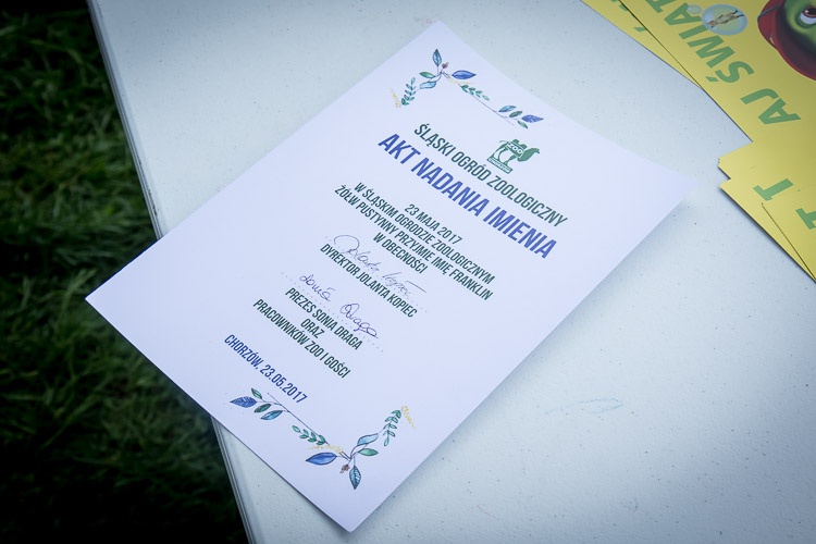 Dzisiaj, 23 maja, w Międzynarodowym Dniu Żółwia, w Śląskim Ogrodzie Zoologicznym pochodzący z gorących i jałowych obszarów Sahelu żółw pustynny przyjął imię Franklin. Oficjalnego mianowania dokonała Sonia Draga, Prezes Wydawnictwa Debit, które od lat zajmuje się wydawaniem książeczek dla dzieci, w tym o przygodach Żółwia Franklina.