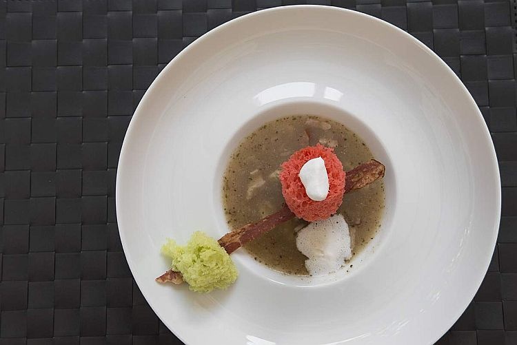 - miejsce: Holiday Inn (szpajza cytrynowo-kakaowa, chutney z rabarbaru, tuile z truskawek i chili, sos kogel-mogel, czekoladowa ziemia, żur śląski, chrupiący boczek, kluseczki grzybowe, piana chrzanowa; rolada śląska, modra kapusta, papier ryżowy, kluseczki śląskie, młoda marchew)