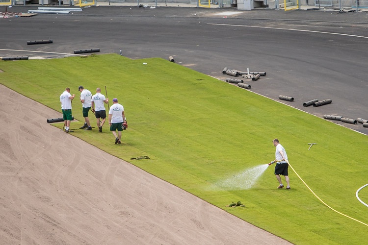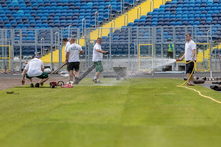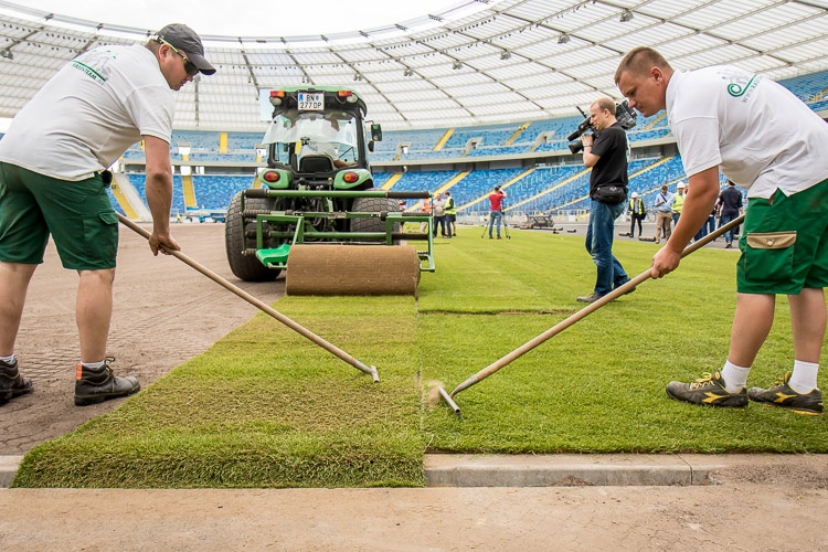 Na arenie głównej Stadionu Śląskiego rozpoczęło się układanie murawy. Cały proces potrwa trzy dni, po nim rozpocznie się montaż bieżni lekkoatletycznej