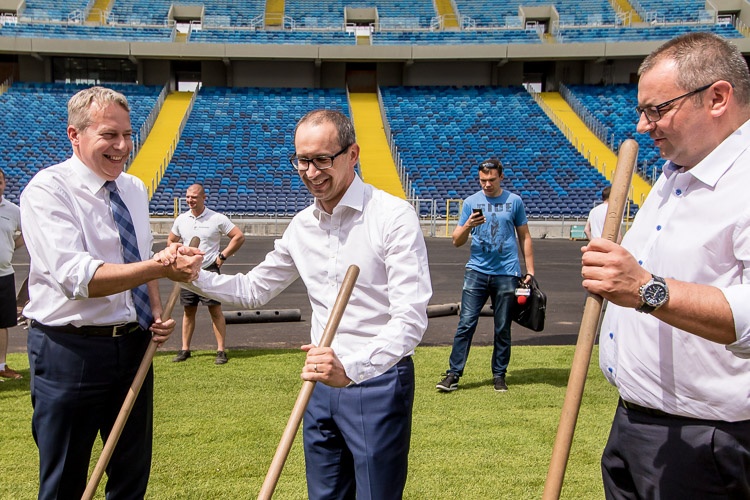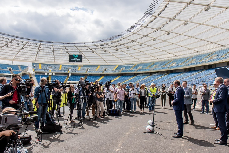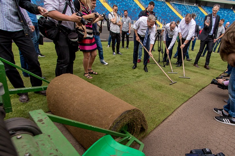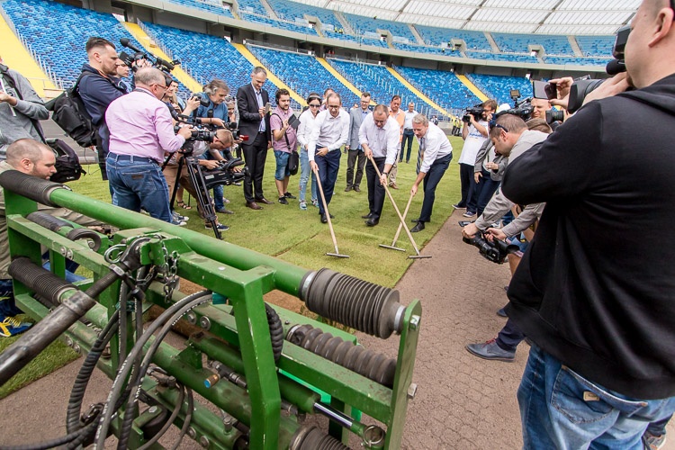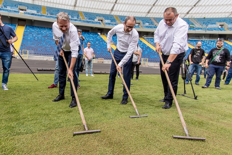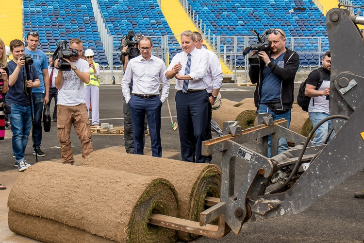 „Stadion Śląski nabiera barw. Krzesła są zamontowane prawie w komplecie, dzisiaj układamy murawę, czyli jądro stadionu. Po skończeniu tego zadania przyjdzie czas na montaż bieżni, żeby na jesień móc kontraktować na Stadionie Śląskim pierwsze ważne imprezy” – mówił w czasie konferencji prasowej marszałek Wojciech Saługa.