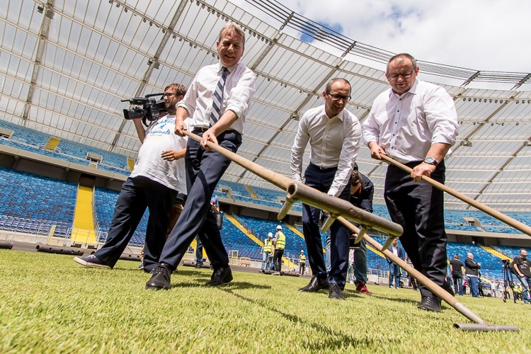 Murawa dla stadionu została przetransportowana tirami-chłodniami z Węgier, gdzie została wybrana na plantacji pod Budapesztem. Ten rodzaj trawy spełnia wszystkie kryteria dla trawy sportowej stosowanej na stadionach. Do Chorzowa przywiozło ją dwanaście ciężarówek, a w każdej mieści się siedemset metrów kwadratowych murawy o wadze dwudziestu czterech ton. Trawa ma być kładziona przez trzy dni.