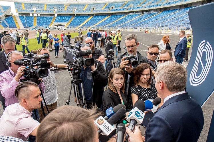 „Prace na Stadionie Śląskim są wykonywane zgodnie z harmonogramem i z końcem czerwca większość z nich się zakończy, co umożliwi zgłoszenie obiektu do odbiorów. Krzesełka są zamontowane w 98 procentach, łącznie będzie ich na stadionie 54 tysiące. Zakończono już roboty instalacyjne związane z oświetleniem i nagłośnieniem, za kilka dni rozpoczynamy układanie bieżni lekkoatletycznej, na której będą mogły odbywać się zawody rangi międzynarodowej” – podsumował postęp prac członek Zarządu Województwa Śląskiego Kazimierz Karolczak.