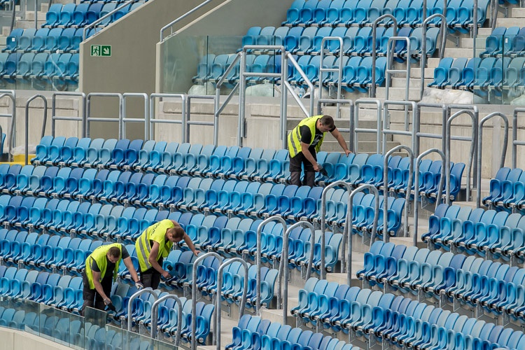 Do końca czerwca zakończą się też prace związane z zagospodarowaniem terenu i wszystkich ciągów komunikacyjnych na stadionie. Układanie bieżni lekkoatletycznej ma natomiast potrwać do końca lipca. Kiedy gotowa będzie bieżnia i murawa, do zakończenia pozostaną już tylko prace wykończeniowe w kubaturze stadionu, w części trybuny wschodniej i w kioskach gastronomicznych na promenadach wokół obiektu.