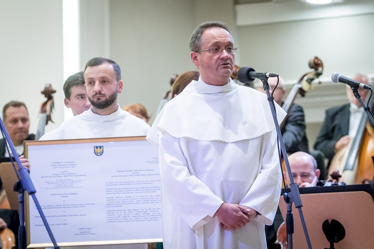 O. Arnold Chrapkowski dziękując, przypomniał o wielkim znaczeniu Jasnej Góry m.in. w naszej historii, w tworzeniu się tożsamości narodowej, w ogromnej maryjności Polaków. „To wszystko wpływa także na kształt naszego regionu, na naszą świadomość, na nasze ludzkie poczynania, na plany, które czynimy, bo nie można tego miejsca wymazać z geografii tego terenu. To miejsce jest głównym ambasadorem i Polski, i naszego regionu, dlatego wyrażam w imieniu całej wspólnoty paulińskiej, nie tylko wspólnoty jasnogórskiej, ale wspólnoty wszystkich domów ojców i braci paulinów serdeczną wdzięczność panu marszałkowi i tym wszystkim, którzy przyczynili się do podjęcia tej uchwały, która jest tylko zewnętrznym wyrazem związku tej ziemi z Jasną Górą i cudownym wizerunkiem Maryi" - mówił o. generał.