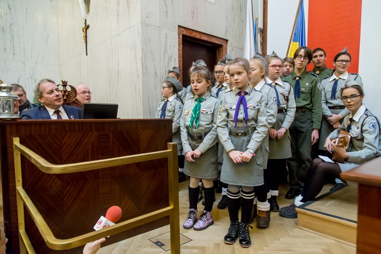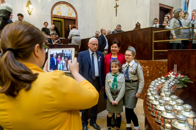 „W tym roku przesłanie tego światła jest dla nas szczególnie ważne, bo zbliża się stulecie niepodległości i stulecie Związku Harcerstwa Polskiego. Betlejemskie Światło Pokoju od lat trafia na nasze stoły do ludzi, którzy na nie czekają i potrafią się nim dzielić. Wierzymy, że jego płomień i w tym roku zapłonie w wielu domach w naszym regionie i będzie nam towarzyszył w trakcie świąt” – mówiła Anna Peterko, komendant Śląskiej Chorągwi Związku Harcerstwa Polskiego.